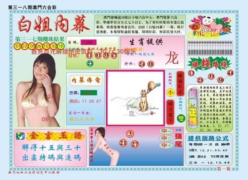 | 317期《白姐九肖》 综合九肖♘:鼠狗马龙蛇牛虎鸡猪 综合七肖♘:鼠狗马龙蛇牛虎 综合五肖♘:鼠狗马龙蛇 主攻特码♘:06.18.32.44.12.36.02.38.01.25 ![]() |